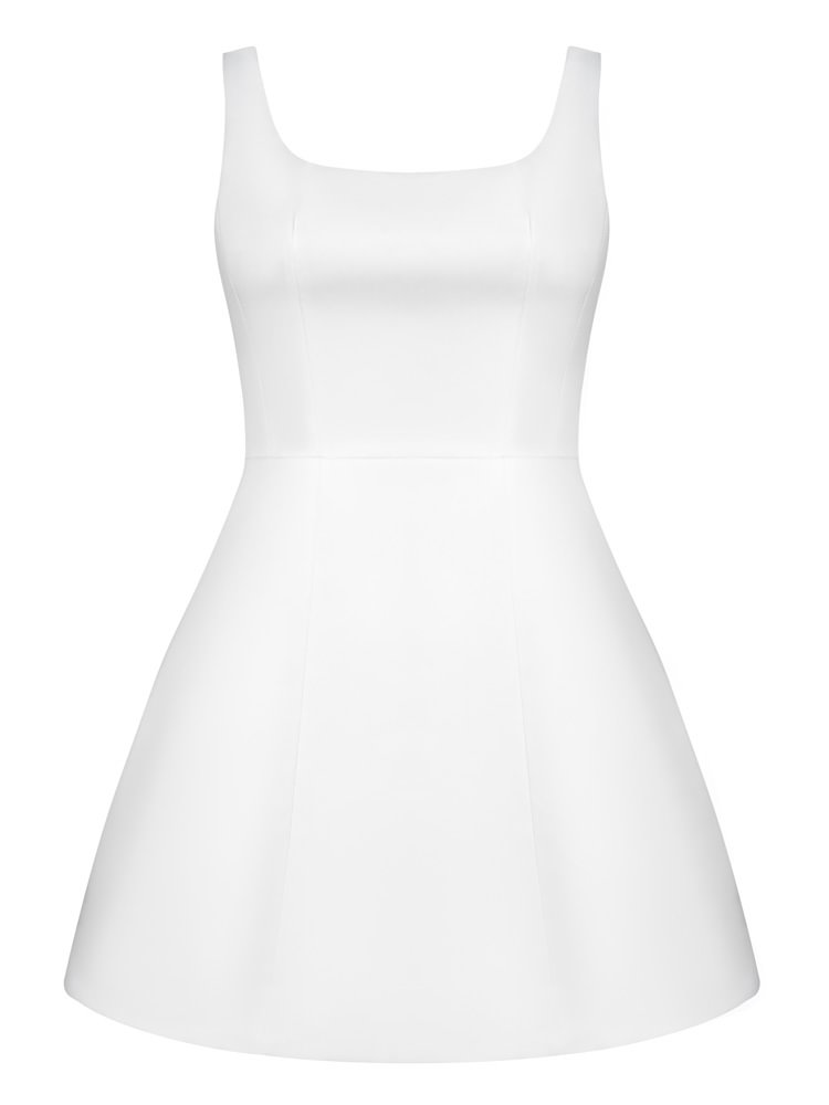 Satin Square Neckline Backless Cinched Waist Mini Dress