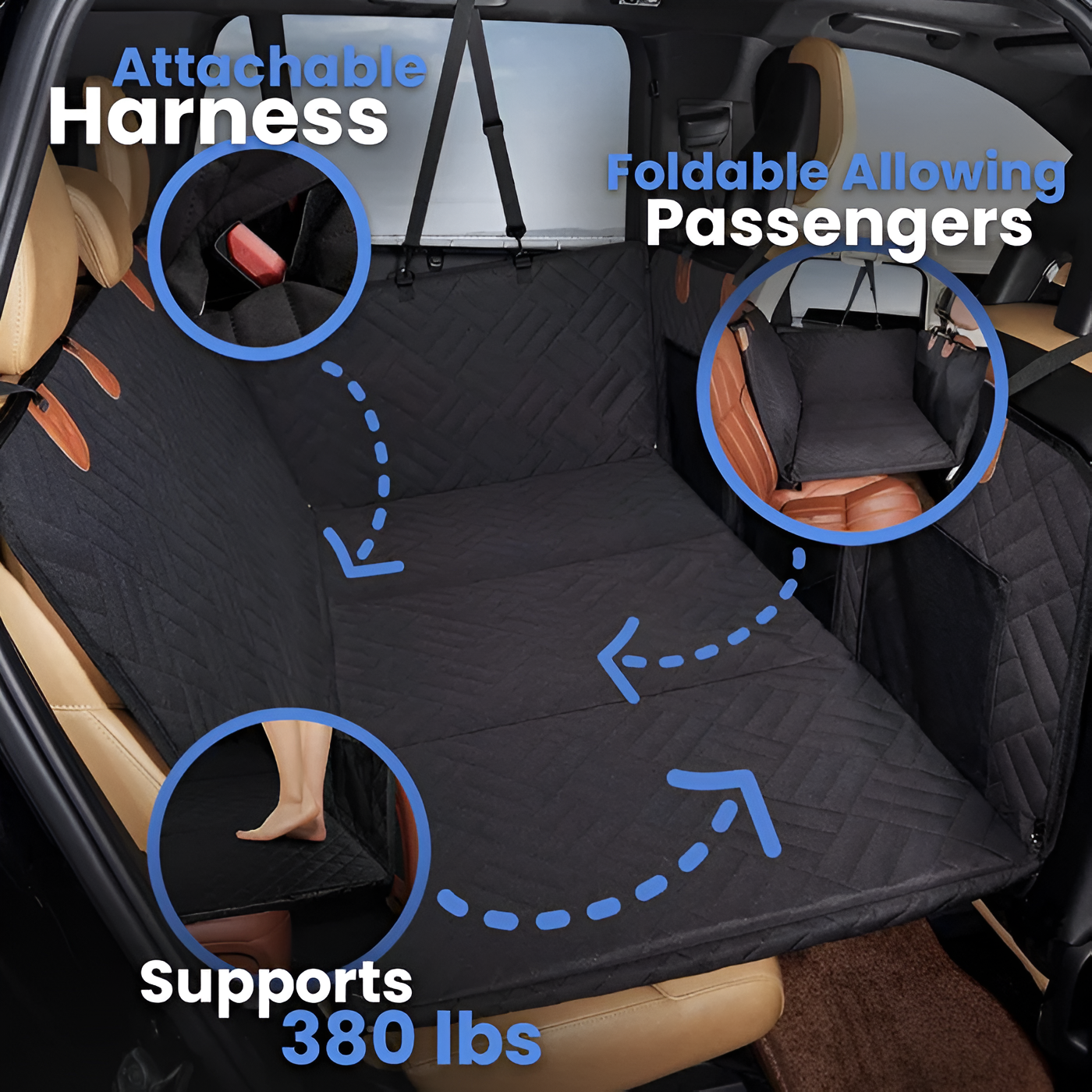 NEW Waterproof Non-Slip Car Seat Hammock Cover With Pockets, Side Flaps, Headrest Straps, Seat-Anchors, & Mesh Window (+FREE SAFETY BELT!)