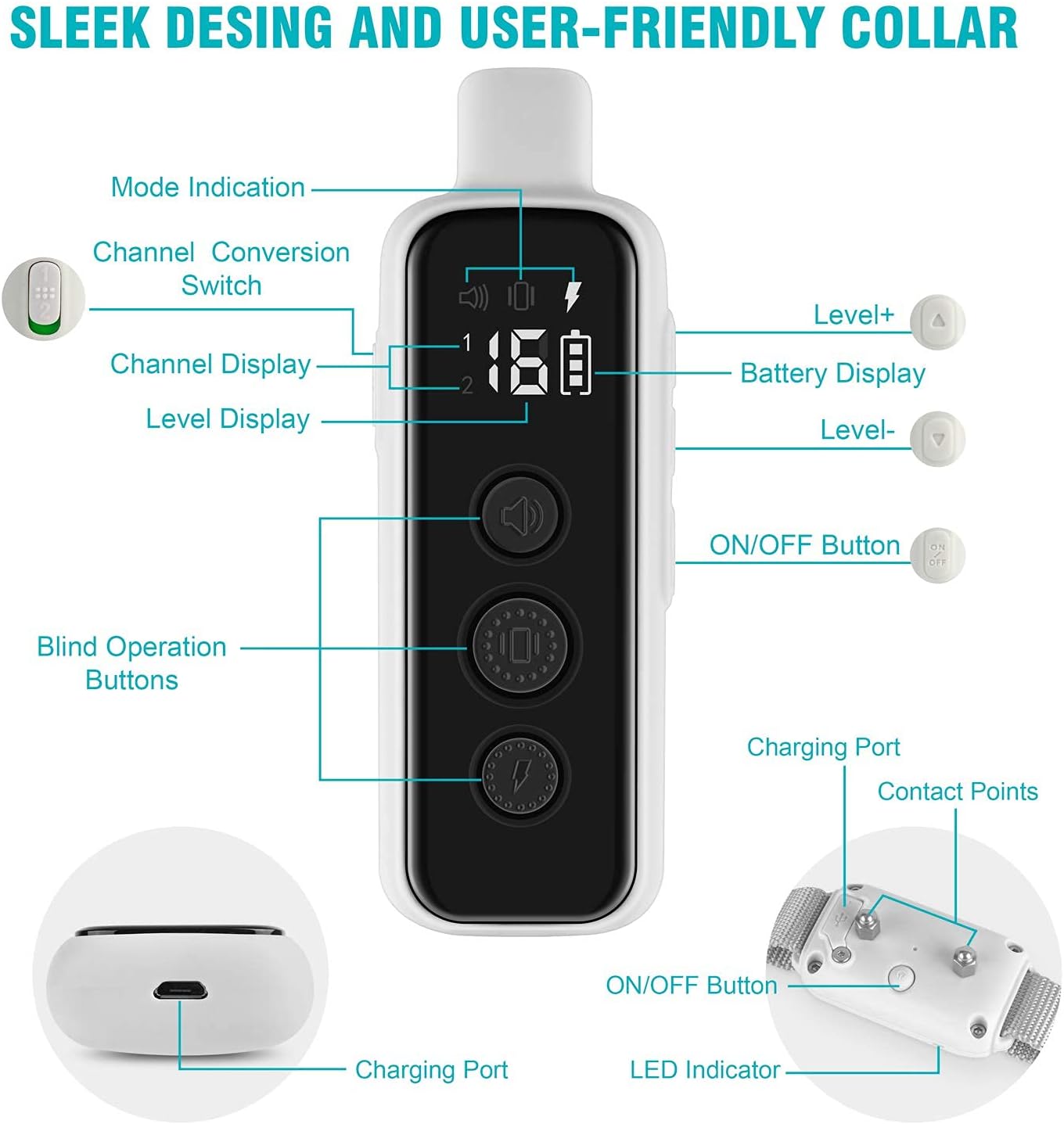 - Training Modes: Beep, Vibration, Safe Shock (Adjustable 1-16 Levels)
