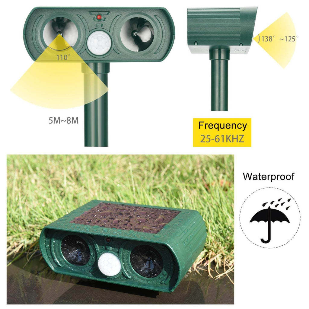 Solar Power Ultrasonic Animal Pest Repeller Infrared Sensor Waterproof Animal Deterrent