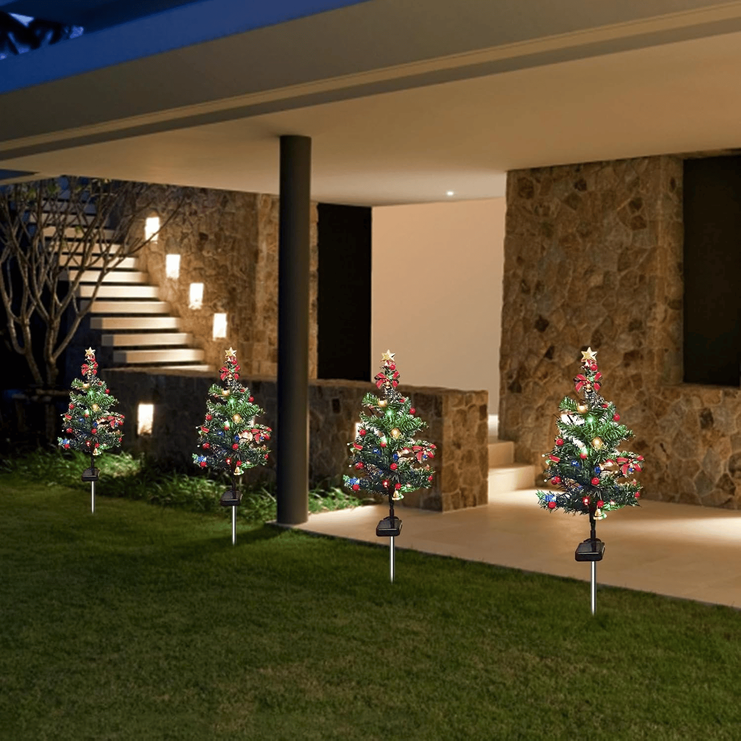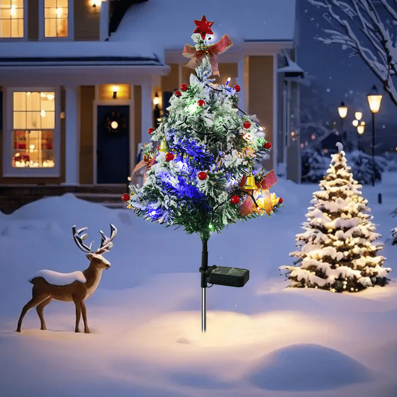 The outdoor solar garden lights with IP65 waterproof feature, even in bad weather work well and long lasting. The Xmas tree is solar energy powered, and upgraded solar panel,they can convert sun energy faster and more efficiently.