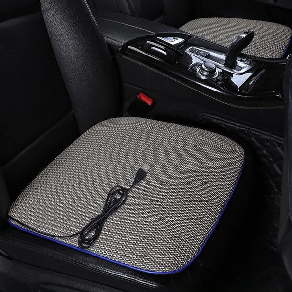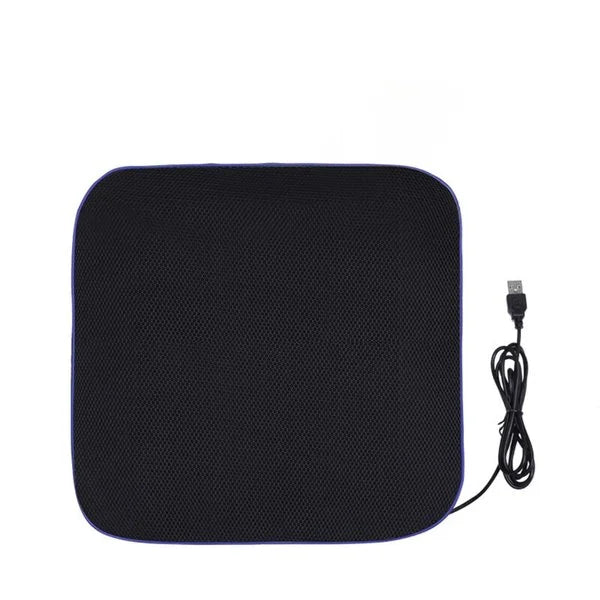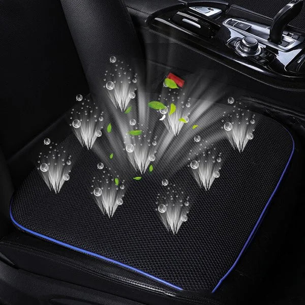This cooling seat cushion has non-slip rubber bottom and adjustable straps to secure it to the car seat.