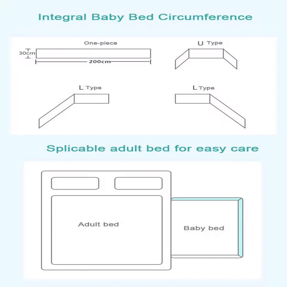 The size is designed to fit standard cribs, measuring 200 cm x 30 cm.