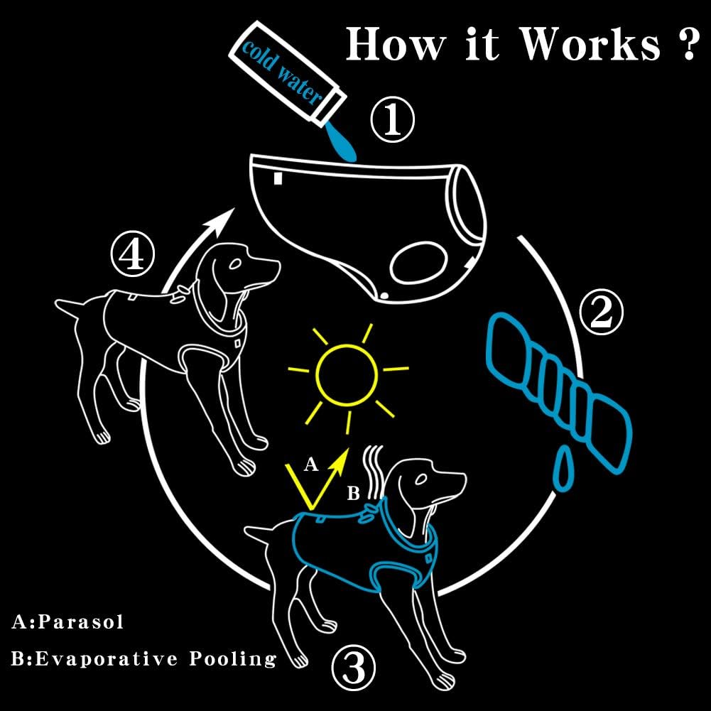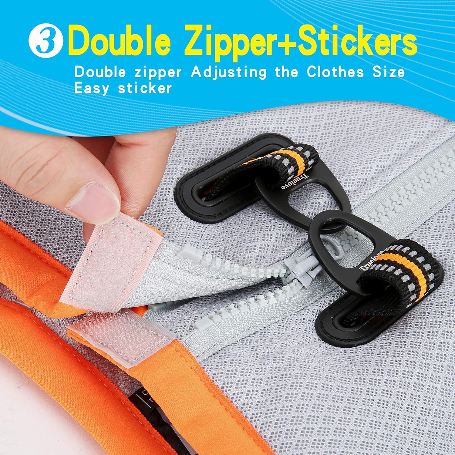 ADJUSTABLE FIT: This cooling jacket is easy to put on and take off with its double zipper design and can be adjusted for a perfect fit. The sturdy Sticker helps keep it securely in place on your dog.