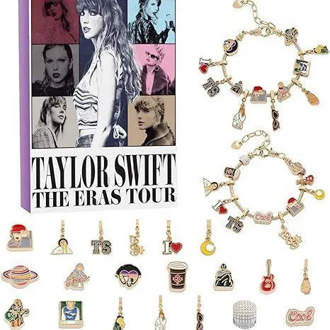 Experience the magic of TS’s iconic eras with this Eras Tour Advent Calendar! Each day reveals a new surprise inspired by Taylor’s music and style. From beautiful keychains and trendy ornaments to collectible charms and bracelets, this calendar is the perfect way for Swifties to celebrate their love for Taylor throughout the holiday season.