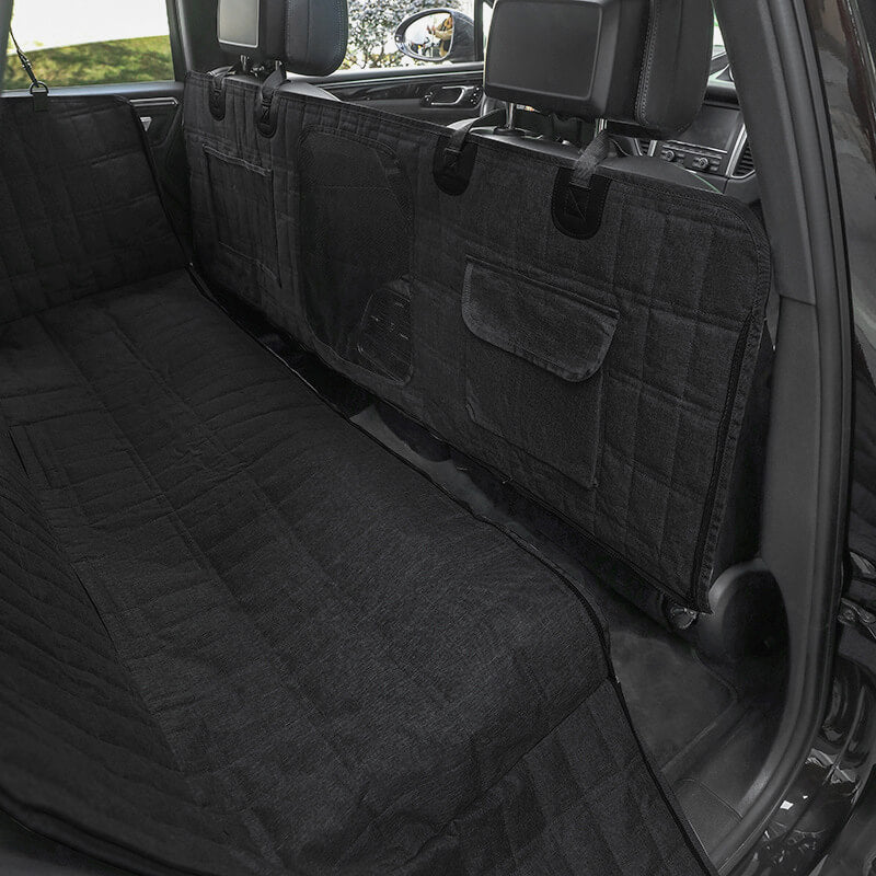 Crafted from 600D extra high-density oxford material, our dog car back seat cover ensures premium quality and excellent protection for back seats. The double-reinforced stitching provides nonslip and waterproof features.