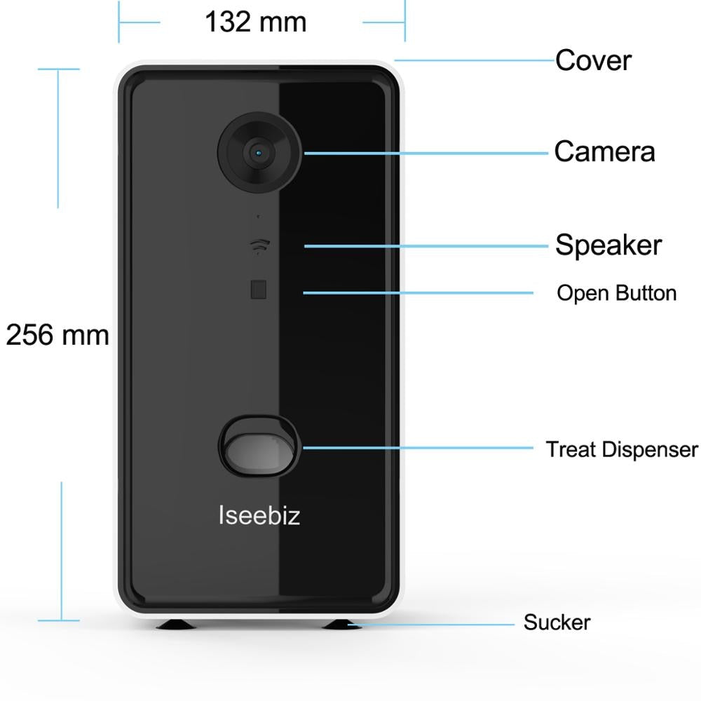 - Stay connected with your pet with the Iseebiz Wifi-enabled Dog Camera and Automatic Treat Dispenser. Its two-way audio feature allows you to chat and calm your pet from anywhere, promoting a close bond and alleviating pet anxiety.