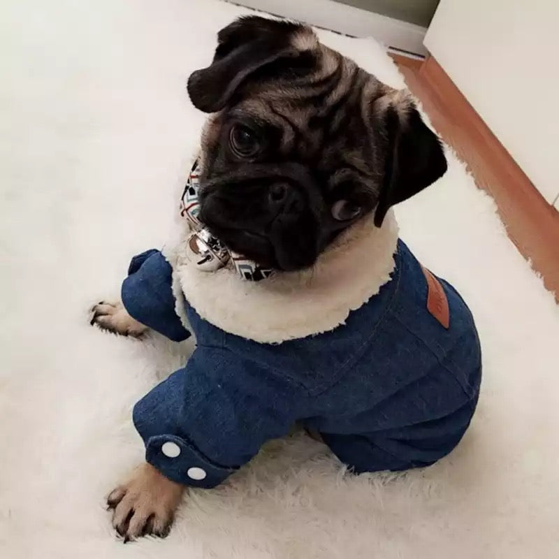Winter Fleece Denim Dog Jacket