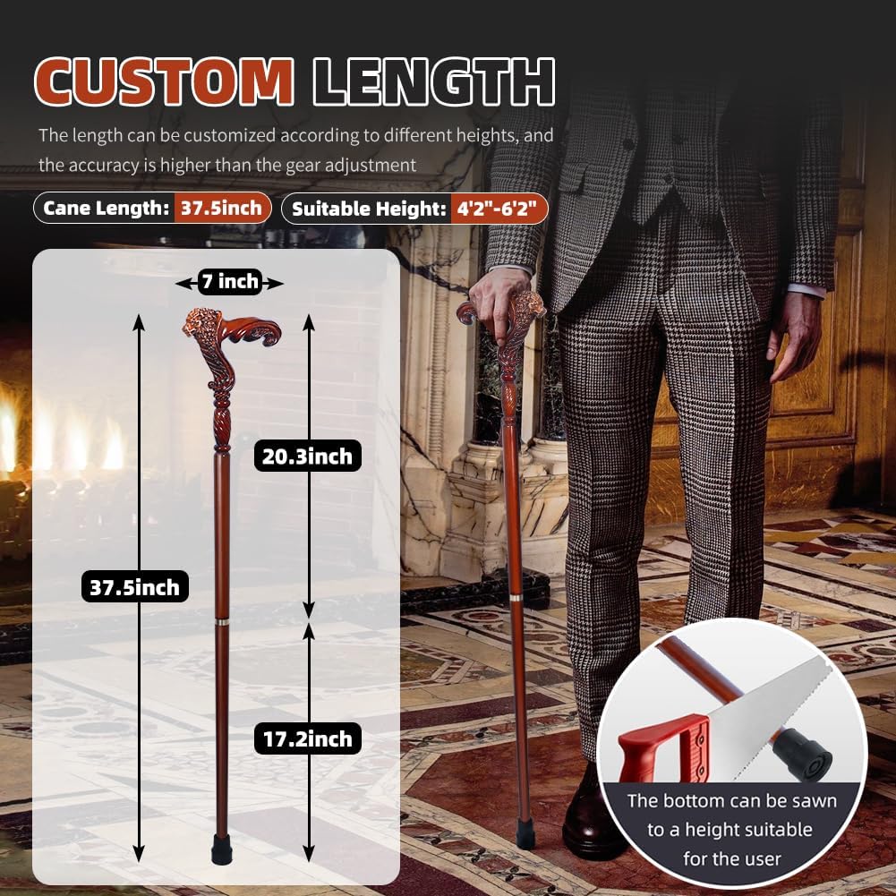 The Lion Handle Cane is ingeniously designed with a detachable feature in the middle, allowing for easy disassembly and effortless portability. Simply separate the cane into two sections for convenient storage or travel